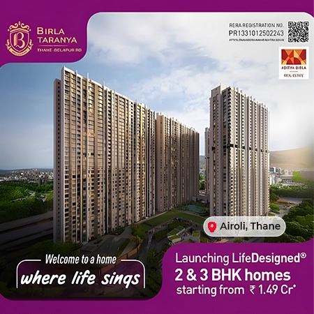 Birla Taranya features excellent connectivity to key hubs like Airoli, Thane, and Navi Mumbai, and a wide range of amenities such as landscaped gardens, clubhouse, swimming pool, gym, children's play areas, and wellness spaces. Backed by the trusted Birla legacy for quality, comfort, and sustainable living. Read More..